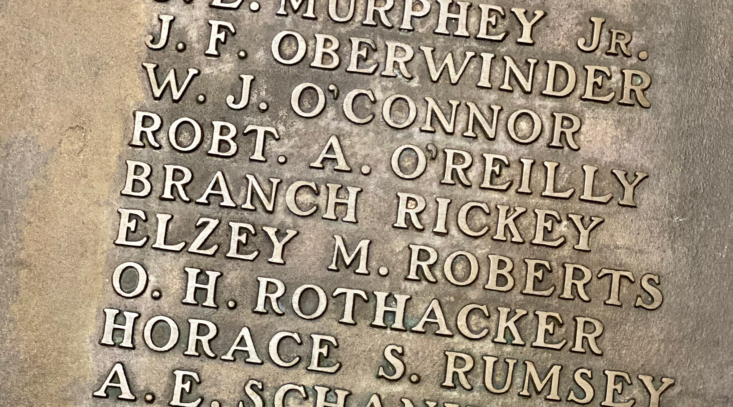 - Close up of Ad Club member Branch Rickey on the Roll of Honor World War I plaque