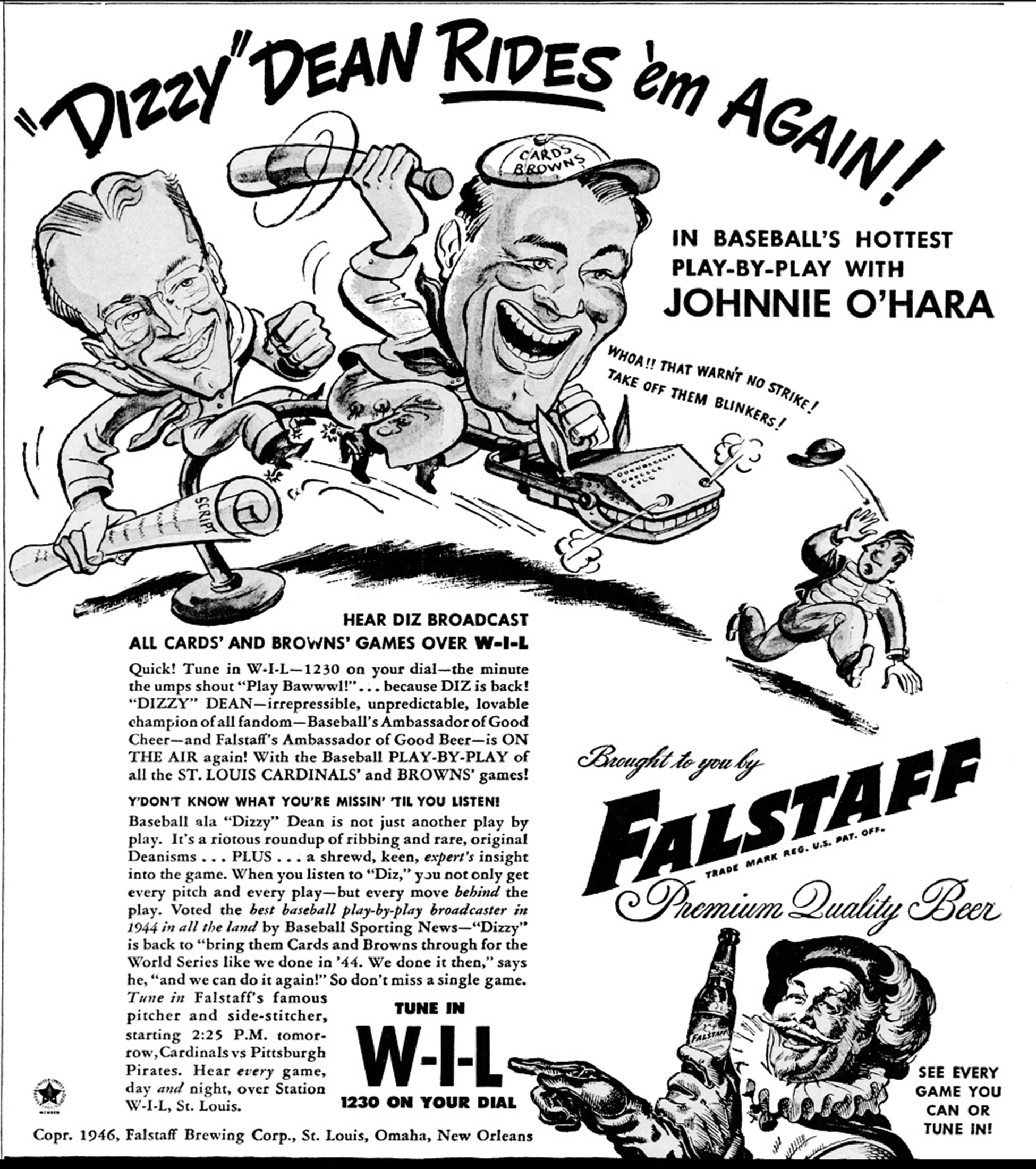 - Dizzy Dean and Falstaff Beer deliver Cardinals and Browns play-by-play on WIL Radio in this 1946 advertisement.