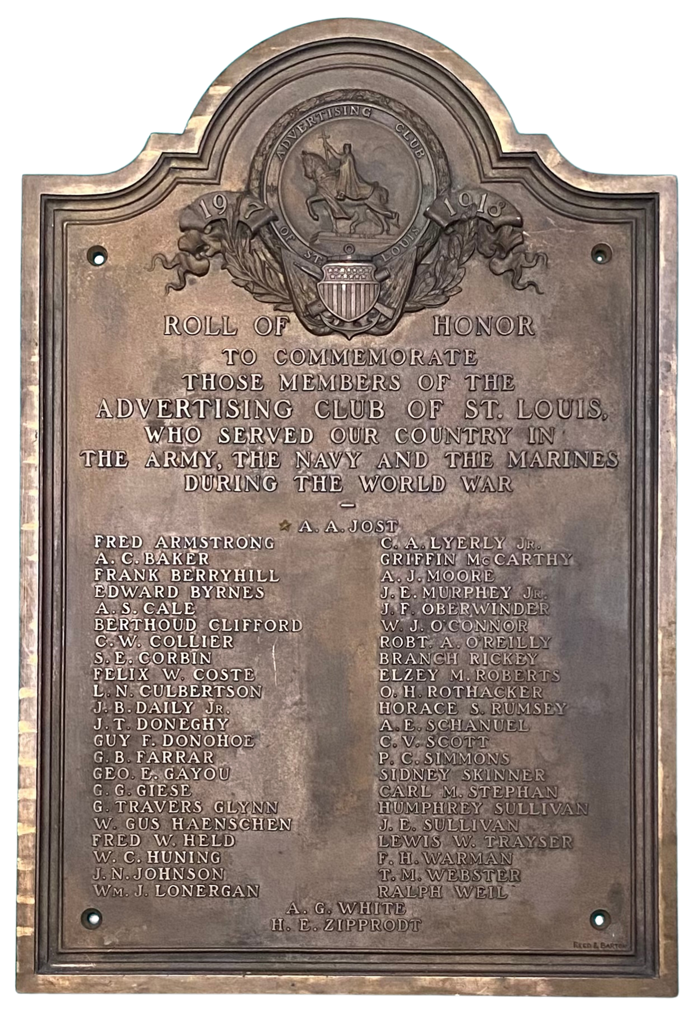 - The Advertising Club of St. Louis Roll of Honor plaque commissioned to recognize Ad Club men who served in the U. S. military during World War I