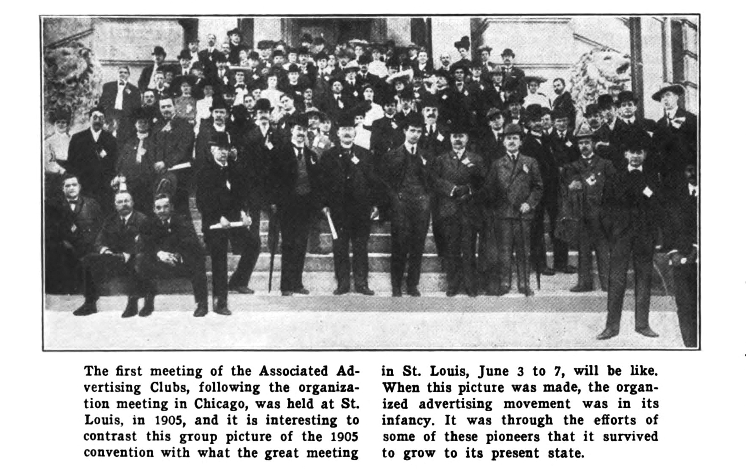 By the way, you may also recognize what the Associated Advertising Clubs of the World eventually became by its current name, the American Advertising Federation. The AAF was also established in 1905. The Advertising Club of St. Louis is a proud member of the AAF and is known as AAF St. Louis.